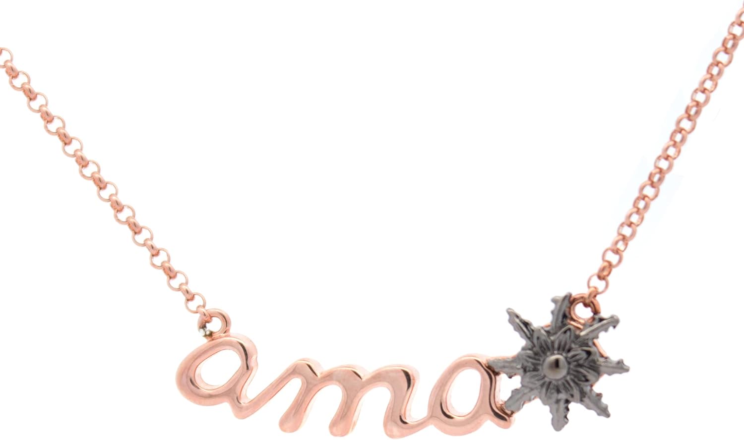 - MÁXIMA CALIDAD: Gargantilla Amor para mujer de Plata de ley bañado en oro rosa 18kt. con motivo "Ama" y Eguzkilore bañado en rutenio con cadena de eslabones ajustable. El mejor regalo para tu madre.